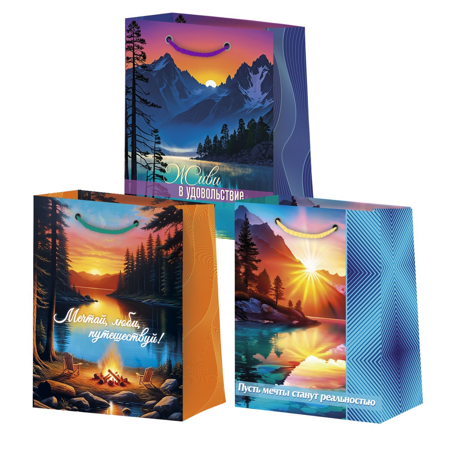 Пакет подарочный бумажный (26,4х32,7x13,6) ламинир мужской микс 1/12/240 оптом и в розницу в Перми, цены в каталоге с доставкой