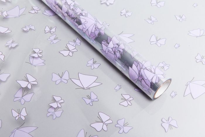 Ролик 60см х10м пленка полипропилен сиреневая Мотыльки 1/10