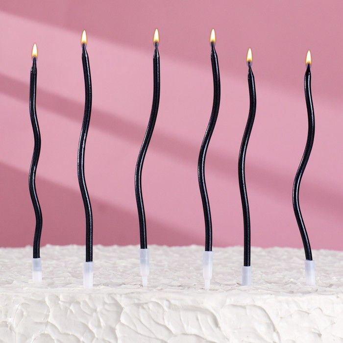 Свеча для торта Серпантин витые мокрый асфальт 6шт 1/400 оптом и в розницу в Перми, цены в каталоге с доставкой