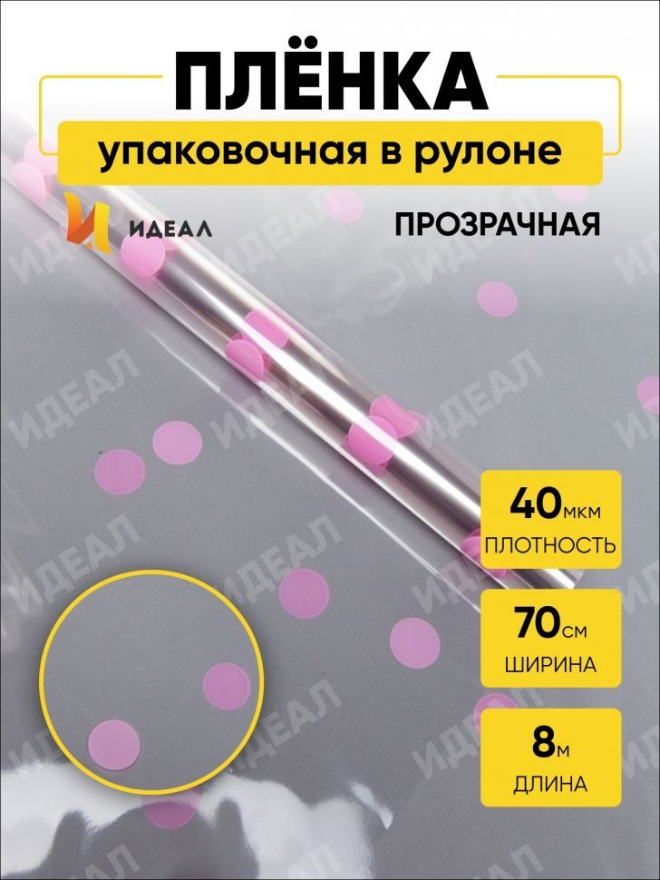Ролик 70см х8м пленка полипропилен с рисунком Горошины розовый 1/10 оптом и в розницу в Перми, цены в каталоге с доставкой