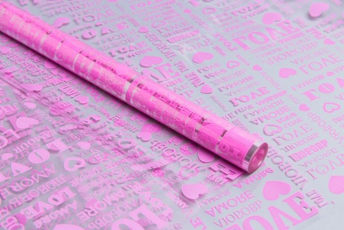 Ролик 70см х8м пленка полипропилен с рисунком Love розовый 1/10 оптом и в розницу в Перми, цены в каталоге с доставкой