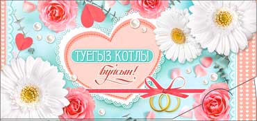 Конверт для денег 16,5х8см С днем свадьбы на тат языке 10/10 оптом и в розницу в Перми, цены в каталоге с доставкой