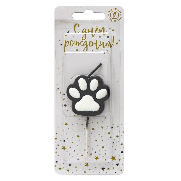 Свеча для торта на шпажке Лапка-сквиш черно-белая 1/30