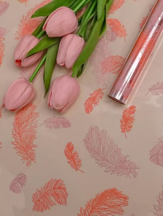 Ролик 60см х10м пленка полипропилен персиковый Перышки 1/10 оптом и в розницу в Перми, цены в каталоге с доставкой