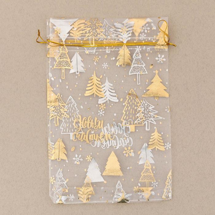 НГ Подарочный мешок текстильный ОРГАНЗА С новым счастьем! 20х30см 1/20 оптом и в розницу в Перми, цены в каталоге с доставкой