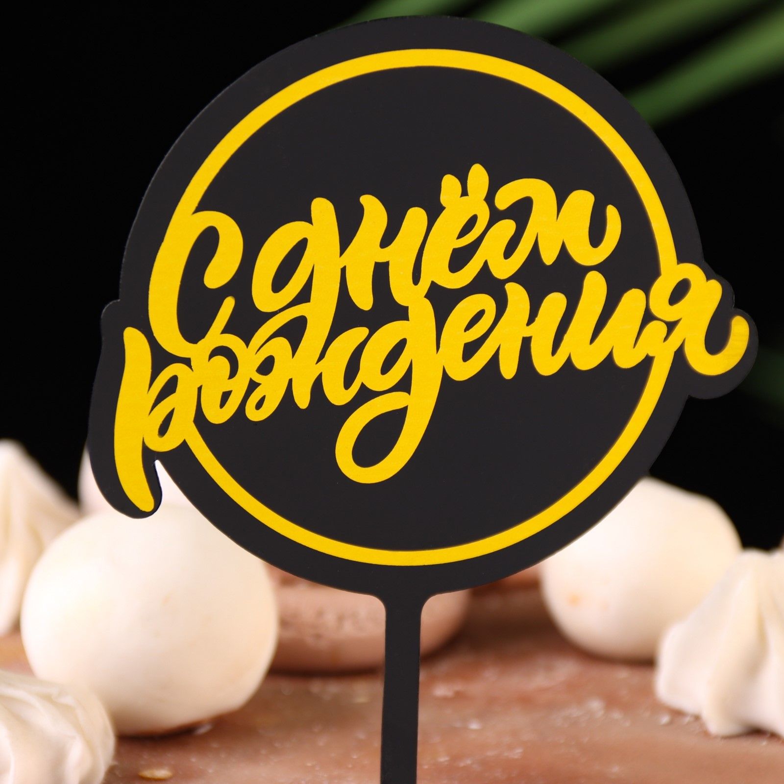 Топпер для торта С днем рождения! черный желтый 1/20 оптом и в розницу в Перми, цены в каталоге с доставкой