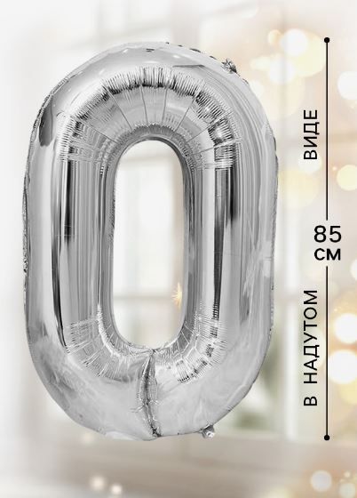 —Шар фольгированный Цифра 0 85см цвет серебро 1/20/500