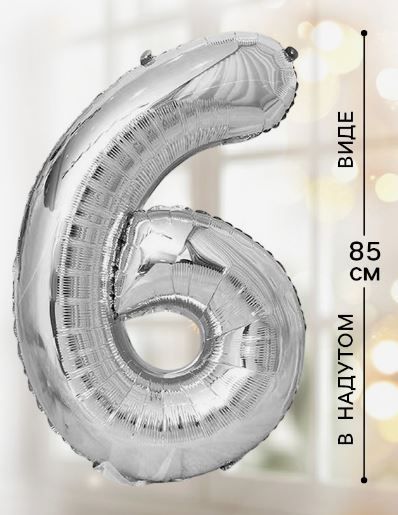 Шар фольгированный Цифра 6 85см цвет серебро 1/20/500