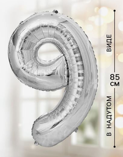 Шар фольгированный Цифра 9 85см цвет серебро 1/20/500 оптом и в розницу в Перми, цены в каталоге с доставкой