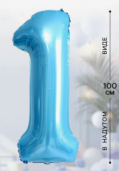 Шар фольгированный Цифра 1 100см цвет голубой 1/20/500 оптом и в розницу в Перми, цены в каталоге с доставкой