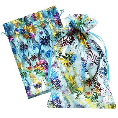 НГ Подарочный мешок текстильный ОРГАНЗА Снежинки 20х30см 1/250 купить оптом и в розницу в Перми с доставкой недорого