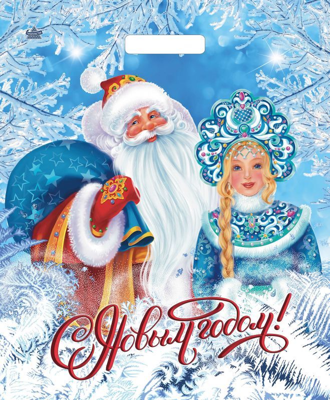 НГ Пакет с вырубной ручкой (38х45)-60 Дед Мороз и Снегурочка ТИКО 50/500 купить оптом и в розницу в Перми с доставкой недорого