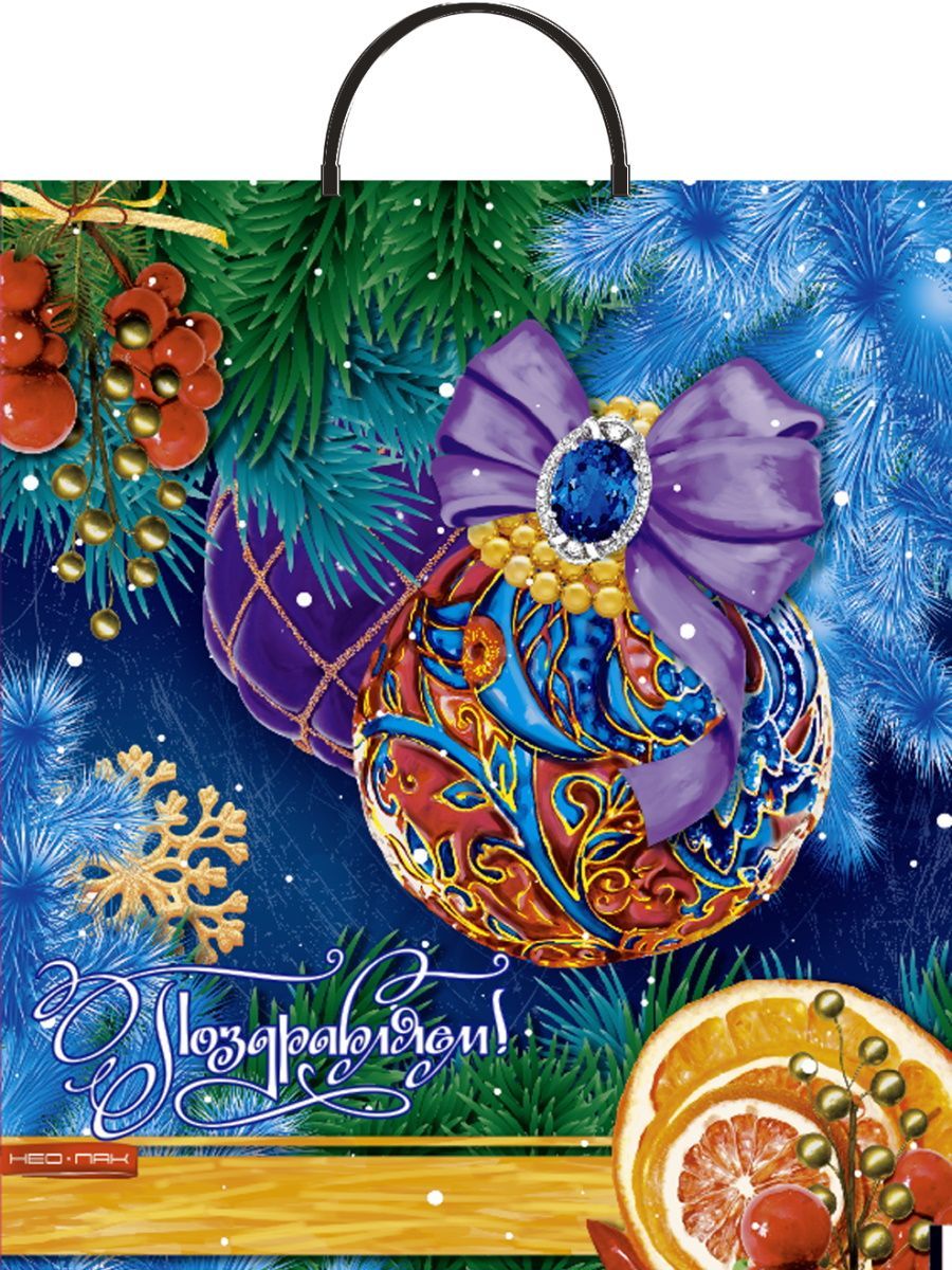 НГ Пакет с пластмассовыми ручками (38х44)-90 Шар с бантом Нео-Пак 5/100 купить оптом и в розницу в Перми с доставкой недорого