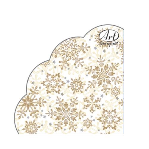 НГ Салфетки 3-сл d 32 см Rondo Золотые снежинки на бежевом (12) 1/15