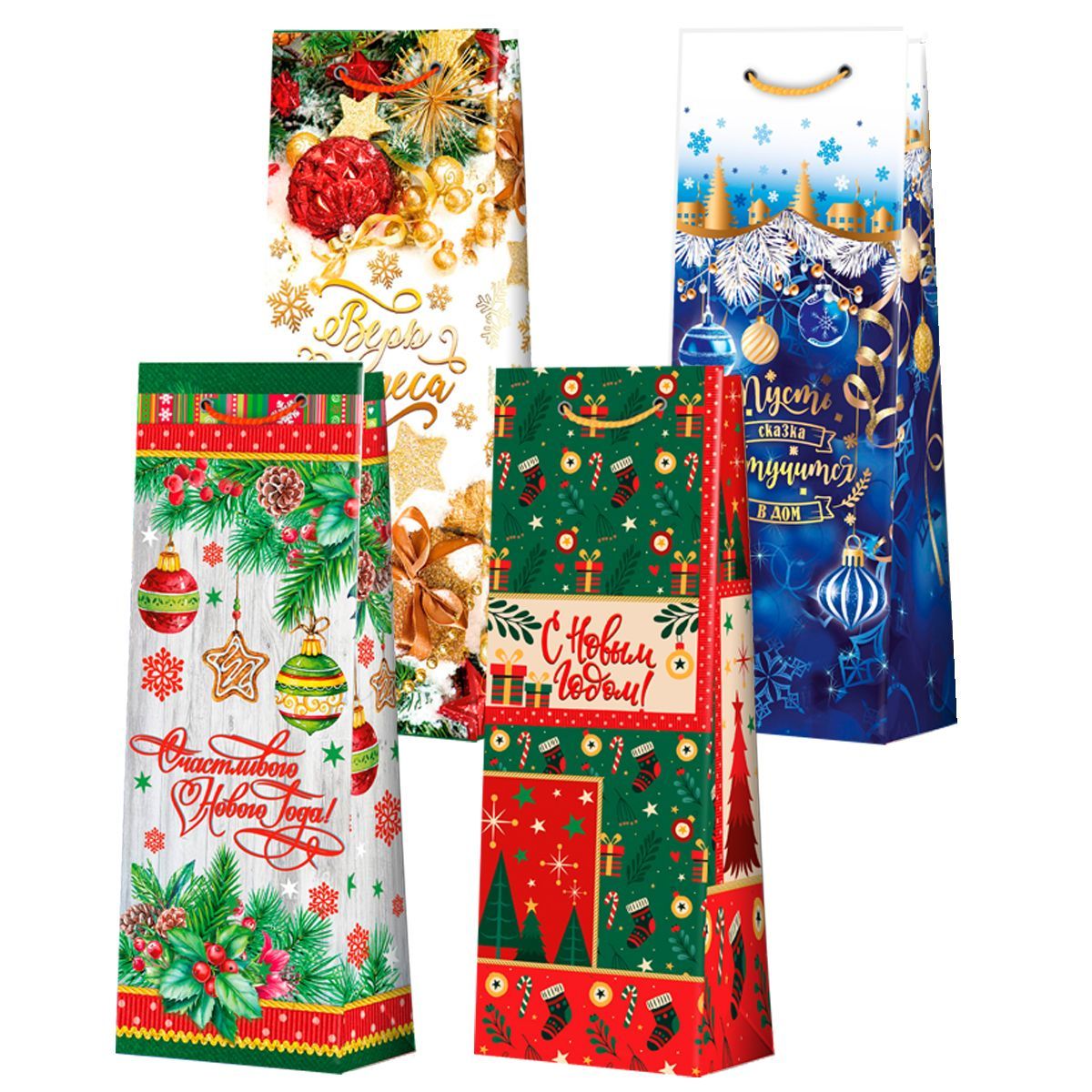 НГ Пакет подарочный бумажный под бутылку (12,3x36x7,8) Микс 1/360 купить оптом и в розницу в Перми с доставкой недорого