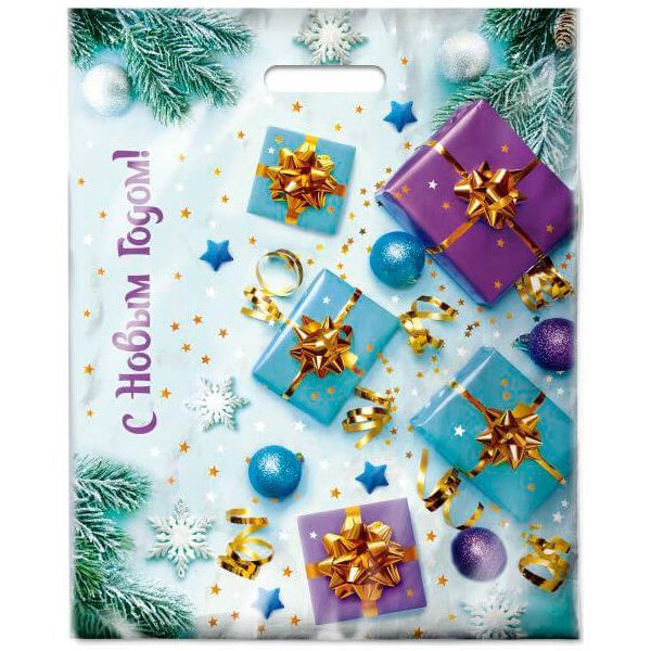 НГ Пакет с вырубной ручкой (38х47)-60 Подарки 50/500 купить оптом и в розницу в Перми с доставкой недорого